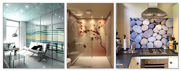 Но и это еще не все - УФ-печать применима к плитке, керамической или стеклянной. Интерьер душевой с такой плиткой выглядит очень богато и безусловно долгое время радует глаз хозяев, ведь они сами могут полностью определиться с сюжетом и цветовой гаммой.