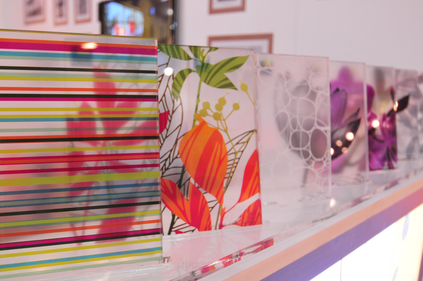 Так же вы можете брендировать помещение, используя УФ-печать на пластике или оргстекле. Изображение можно нанести с обеих сторон, что еще больше привлекает внимание к изделию и позволяет передать больше информации потребителю.